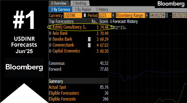 We are the only Indian firm to have ranked consistently in the top 5 of the Bloomberg Dollar-Rupee forecasts. This is the 6th quarter in a row that we have ranked in the Bloomberg Top 5, the first such instance for us.