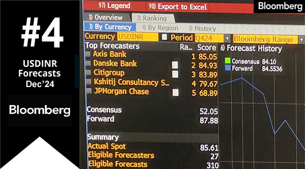 We are the only Indian firm to have ranked consistently in the top 5 of the Bloomberg Dollar-Rupee forecasts. This is the 6th quarter in a row that we have ranked in the Bloomberg Top 5, the first such instance for us.
